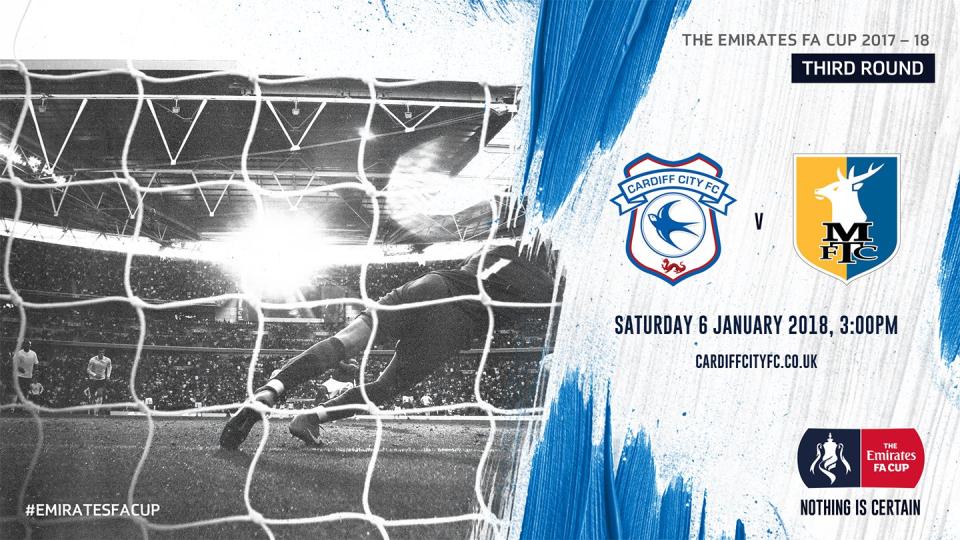 Club News Emirates FA Cup R3 | Cardiff City vs. Mansfield Town Date Confirmed 8th December 2017 Cardiff City will host Mansfield Town in the Emirates FA Cup on Saturday, 6th January 2018, 3pm kick-off! Ticket prices, an on sale date, and further match details for our Third Round match at Cardiff City Stadium will be announced shortly. Read Time: 1 mins