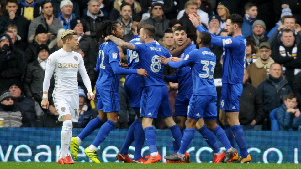 The Bluebirds netted their third goal of the afternoon deep into injury time, with Sean Morrison the scorer. Leeds were reduced to ten men when Gaetano Berardi's late tackle on Yanic Wildschut earned the Leeds defender a second yellow card. From the resulting free-kick, skipper Morrison towered above the Whites defenders, ensuring a comfortable half-time lead for the Bluebirds.