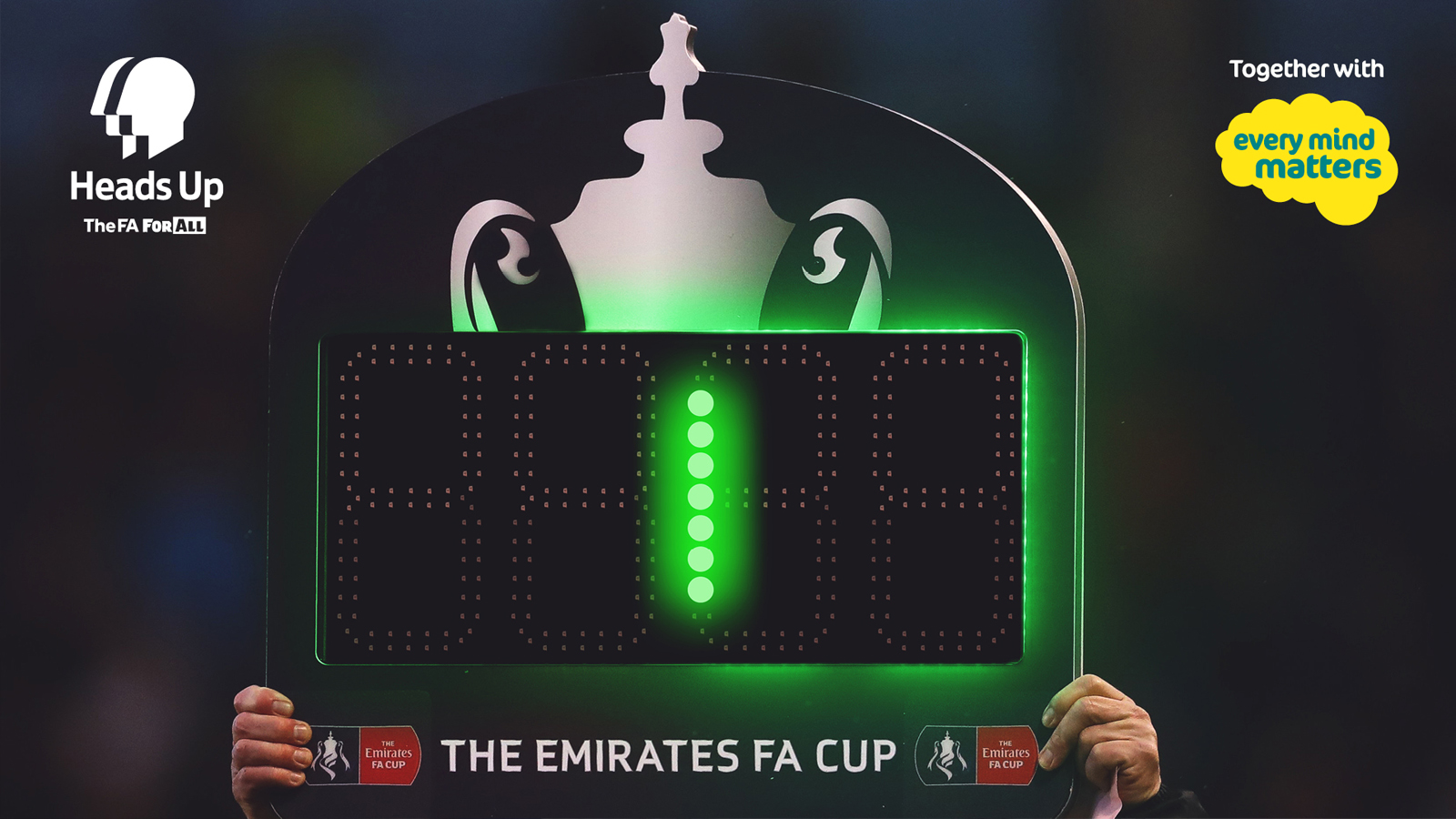 Heads Up is partnering with Public Health England’s Every Mind Matters across the Emirates FA Cup Third Round to draw attention to the simple steps we can all take to look after our mental health and wellbeing.